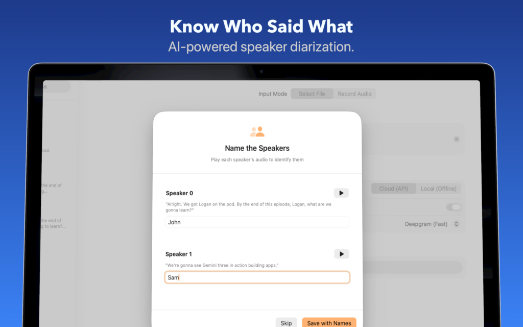 Pick cloud (OpenAI, Deepgram) for speed or local models (Parakeet, WhisperKit) for privacy. You’re in control.